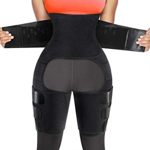 RACELO 3 in 1 Sauna Waist Trainer Butt Lifter Thigh Trimmer Sweat Body Shaper Exercise Wrap Stomach for Women Workout Sports (Black, L)