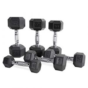 CAP Barbell Set of 2 Hex Rubber Dumbbell with Metal Handles, Pair of 2 Heavy Dumbbells Choose Weight (5lb, 8lb, 10lb, 15lb, 20 Lb, 25lb, 30lb, 35lb, 40lb, 50lb) (25lb x 2)