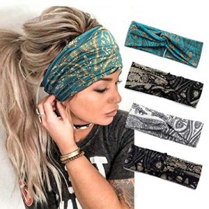 Catery Boho Headbands Criss Cross Headband Headpiece Bohemia Floal Twist Head Wrap Hair Band Vintage Stylish Elastic Turban Fabric Hairbands Fashion Hair Accessories for Women(Pack of 4) (Vintage-4 Pack)