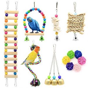 DOMIGLOW Bird Toys for Parakeets – 12 Packs Wooden Parrot Toys Bird Perch Bird Ladder Hanging Chew Toys Bird Cage Accessories for Cockatiel Parakeet Macaw Parrotlet Conure Lovebird (12Pcs)