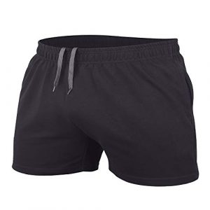 JEEING GEAR Men’s Bodybuilding Workout Gym Shorts 3″ Inseam Sports Cotton with Pocket Black Color Size L