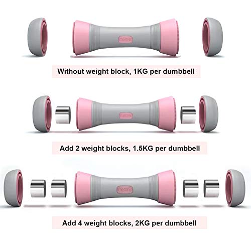• 【Assemble Instructions】Each dumbbell contains 4 extra removable weight Blocks, each weights 0.5 lbs. Without containing any weight block, each dumbbell weights 2.2 lbs / 1kg.