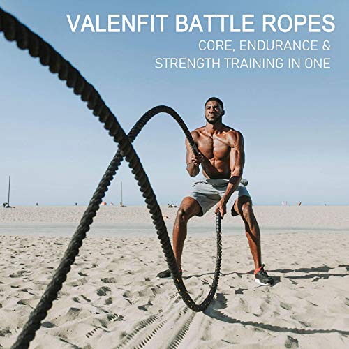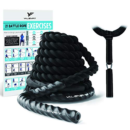 Details: EXPERIENCE THE BEST WORKOUT OF YOUR LIFE– Get Better Results in Less Time with Valenfit Battle Rope –Spice up your routine with your New Pro Battle Rope and Anchor Strap Set. Our premium ropes are designed for any fitness level, allowing for high-intensity workouts that target any and every muscle group, giving you the best strength and cardio benefits!Get the perfect addition for muscle building, fat burning, home gym, or complete body exercise.With our Valenfit Battle Rope Set you will:– Pack on lean mass with dynamic arm, back, chest, legs, and core strength building.– Boost stamina and cardiovascular endurance for performance and health benefits.– Ditch the monotony of boring weights and slow-paced exercise and let’s start slamming a rope.What’s included?✓ Valenfit Battle Rope with Coated Handles (1.5-inch thick x 30, 40-foot length)✓ 2 Reinforced Heavy Duty Anchor Straps✓ Usage instruction for any physical level✓ 100% Satisfaction GuaranteeGet Ready. To Become, A Valenfit Battle Rope’s Fan!