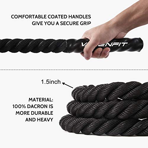 Augvape Valenfit Heavy Battle Ropes,Upgraded Exercise Training Rope of High Tensile Strength,1.5 Inch Diameter 30′ 40′ Lengths Workout Rope, Cardio Workout,Fitness Exercise Rope for Gym & Home