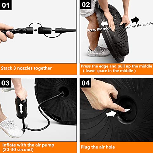 - Fast Inflation Hand Pump–Different from ordinary pumps, we match a high quality and efficiency hand pumps, the time for inflation is reduced by half.(Note: Pull up the balance ball middle to leave space before inflate,otherwise the ball nozzle will be blocked and inflation will fail)