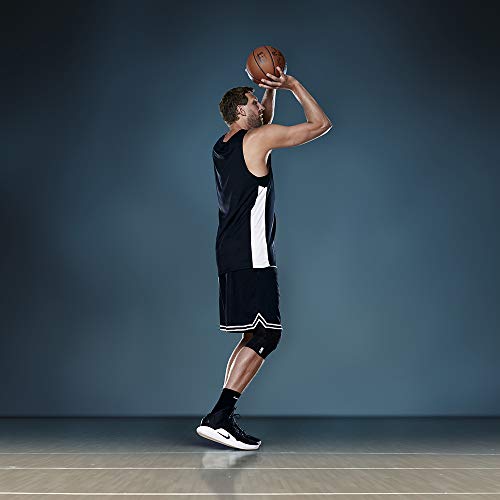 Details: An Officially Licensed product by the NBA, the Bauerfeind Sports Knee Support NBA offers next-level knee support for endurance on and off the basketball court. Developed for the needs and requirements of professional athletes, the Bauerfeind team designed a knee support that is flexible and durable to provide stability on the court when running, jumping, dribbling and shooting. Superior Technology 3D AirKnit Fabric: Unlike most knee braces or sleeves on the market, the Bauerfeind Sports Knee Support NBA is made of a specialty knit fabric instead of neoprene. Where neoprene can only be made in a cylindrical form, requires straps to hold it in place & loses shape over time, the knit fabric solves all these issues. Patella Pad: The Omega patella gel pad is patented by Bauerfeind to provide superior knee pain relief from injuries like jumper’s knee, arthritis knee pain, post surgery recovery support and other knee issues. The patella pad keeps the kneecap in place while playing basketball and allows you to feel comfortable on the court with a stabilized knee. Trusted Reputation & History Partnered with NBATA: The National Basketball Athletic Trainers Association has worked in partnership with Bauerfeind since 2003. NBA Teams have trusted the GenuTrain line of products and 27 teams within the NBA currently purchase a variety of Bauerfeind products to support their best athletes. Together these two organizations are dedicated to providing the best sports medical care solutions for professional basketball athletes. Care Instructions Machine wash your brace in cold water using the gentle or delicate cycle. Wash separately using a laundry detergent with no additives (do not use fabric softener or Woolite). Lay your support flat and let it air-dry; do not putin the dryer. Proper washing & drying helps knit support maintain its elasticity and original fit.
