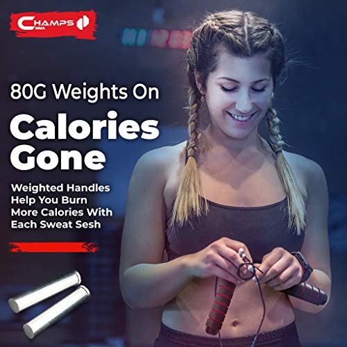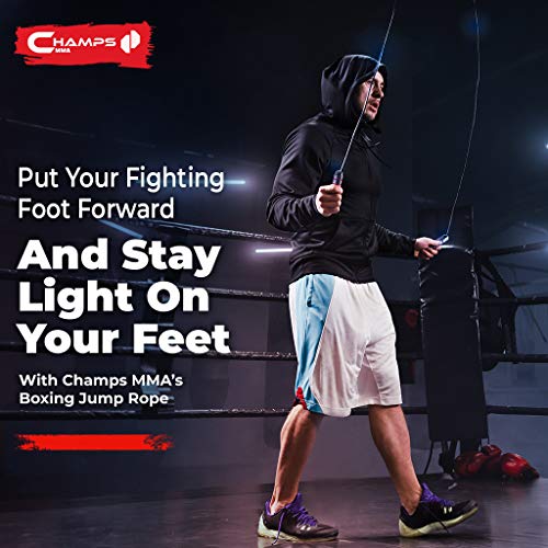 Champs MMA Boxing Weighted Jump Rope for Exercise – Skipping Rope with Adjustable Weights and Length, 360° Rotation, and Non-Slip Foam Handles – Jump Rope Boxing Equipment for Training at Home