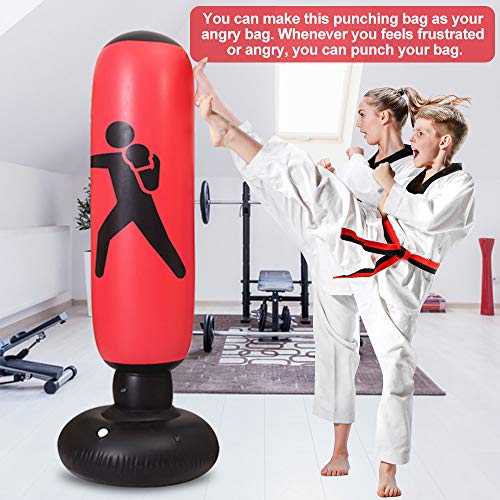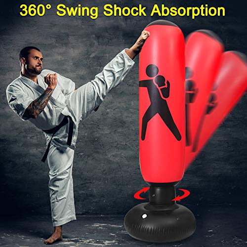 - 【Thickened Kick Boxing Bag】This kids inflatable punching bag is made of a thickened PVC plastic that more refined and durable, reusable. It can withstand an onslaught of kicks and punches, and will always bounce back up for more.Satisfied and enjoy boxing, cardio ,reaction drilling and punching training at home.Perfect for home workout game!