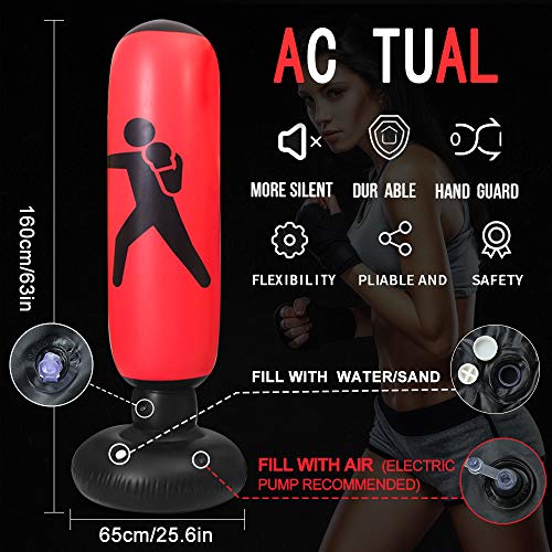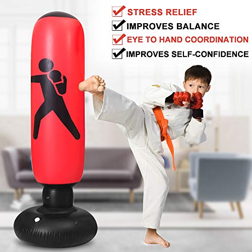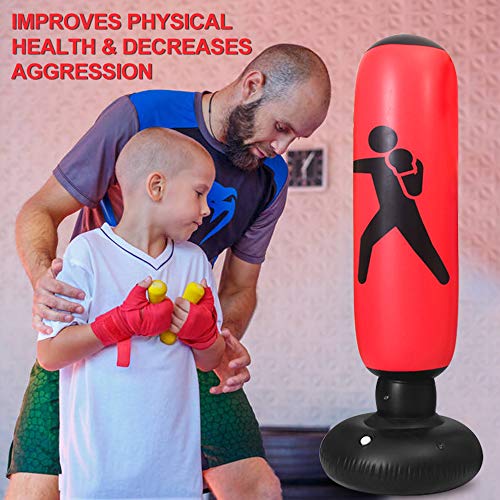- 【Children’s “Exercise Toy”】Boxing bag stands approx 63’’/160cm tall. It allows him to release any stress/ over activity and have fun doing it. It’s also great for teach hand eye coordination.Perfect kids or teens gift training MMA, Karate, Taekwondo, punch, drop-kick or Kung Fu.Give children a perfect and interesting childhood and Keep children away from mobile phones. What a great energy releasing toy!