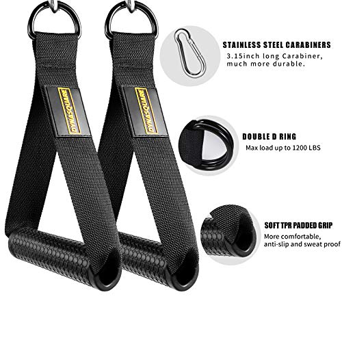 • ✅EXERCISE HANDLES – Are essential training equipment for all fitness enthusiast. Use them to isolate your muscles and stimulate growth. Each handle supports up to 400 pounds each. One size fits all. Non-Slip rubber handle will survive through the most intense workouts! Your training won’t longer be the same with these cable machine handles…