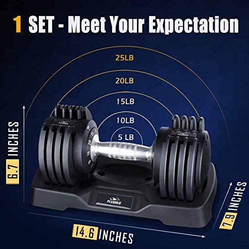 - 【Suitable for Most Fitness Enthusiasts】FLYBIRD adjustable dumbbell supports diverse strength training by changing different weights. Adjustment weights from 5lb to 25lb, even fitness beginners are very easy to use. It is a great choice for modify muscle lines and strong muscle fibers.