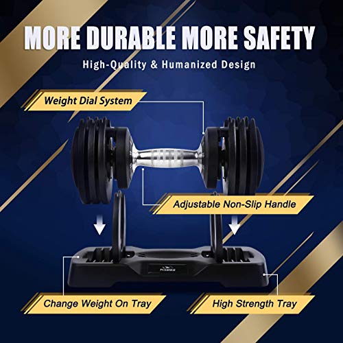 - 【1-Second Weights Change】One-handed operation design, convenient for fast changing dumbbells’ weight during training. Just turn the handle with one hand, FLYBIRD dumbbells can save your time of changing different weight with both hands, enjoy the faster adjustment and gain better training effcient.