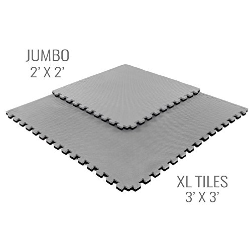 Details: Description – Our Jumbo Soft Tiles are constructed with the same high density closed cell foam as our standard Jumbo Soft Tiles, but are softer creating a surface that is more shock absorbent. Since these tiles are softer, they are even better for high impact play and workouts making them perfect for any playroom, martial arts studio, MMA gym, Judo, and much more. Featuring the same reversible colors, these interlocking tiles are still just as easy to carry and store. Coming with two removable edge pieces, the creation of corner, border, or center tiles is a breeze, allowing you to create any size finished flooring surface.