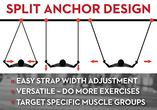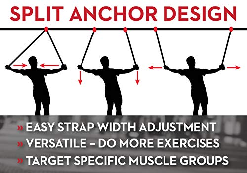 - Patented split anchor design allows for narrow, neutral and wide angles of resistance for up to 3X the exercises to target more muscle groups than single anchor versions and increase body control.