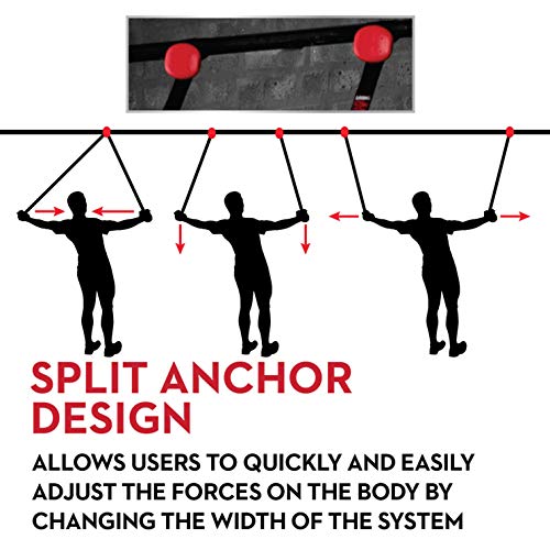 The unique split anchor design allows users to quickly and easily adjust the forces on the body by changing the width of the system. With this versatility, you can perform a countless number of exercises while targeting more specific muscle groups and improving core strength, flexibility and muscular power.