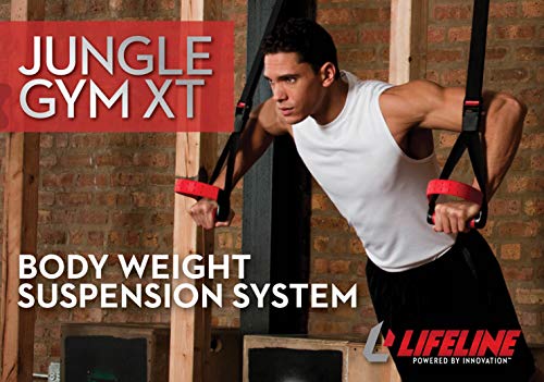 Details: Take your body weight suspension workouts to the next level with the Jungle Gym XT featuring the split anchor design, two non-scuff door anchors and two strap end adjusters. Lifeline’s revolutionary Jungle Gym XT lets you use your own body weight as a means of resistance for improving endurance and overall strength. Body weight exercises, such as those done with the Jungle Gym XT, demand more flexibility and balance than other exercises, and they result in improved health and fitness. Body weight resistance training also improves your proprioception – your ability to sense the position of your body and limbs in space – resulting in better sports and training performance.