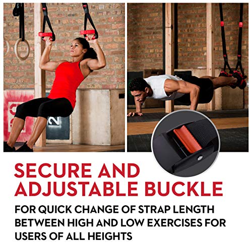 - Industrial-strength suspension straps are built for punishing commercial use and the adjustable inline buckles allow for rapid strap length adjustment to quickly change between high and low exercises.