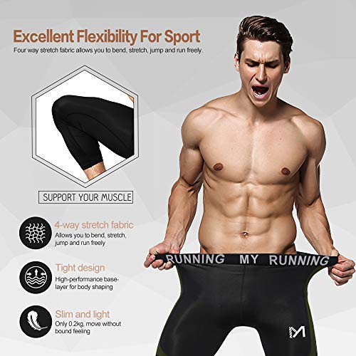 - [High-performance Leggings for Body shaping] The 3/4 compression leggings for men is designed with 92% polyester and 8% spandex, which maintains its shape after repeat washing. The running pants will support your muscles well, protect your skin and joints with less risk of rash, overheating or muscle fatigue in athletic activities