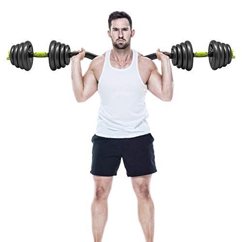 - 【Detachable Adjustable Weight】Multiple uses this dumbbell are ideal to exercise arms, chest, back, core, and legs. You can adjust this dumbbell from hand-held 2.75 lb to barbell 44lb. There are four different sizes of dumbbell pieces for you to choose from.