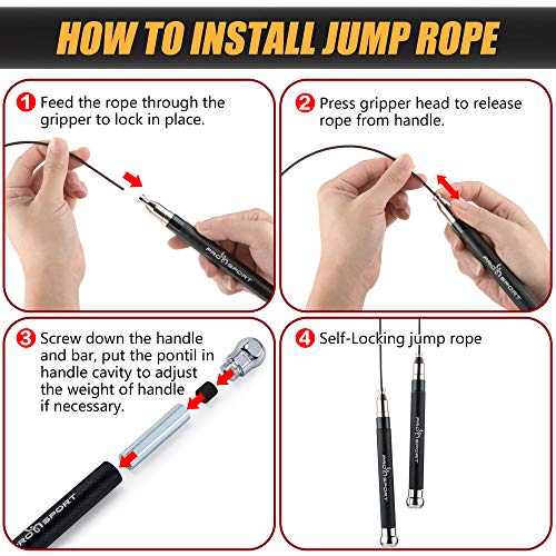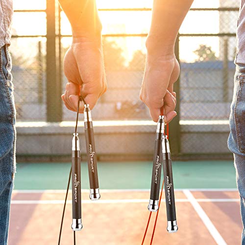 Does it frustrate you when you finally “hit the zone” in your jump rope workout and then suddenly have to stop because the screws keep flying off of your speed rope?Those days are OVER thanks to the Pro&Sports Speed Jump Rope! Our speed skipping rope is the smoothest spinning and fastest rotating jump rope you can use for crossovers and double unders!Beginner and advanced users will be amazed by the Pro&Sport Speed Jump Rope