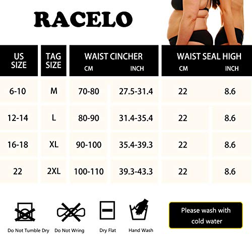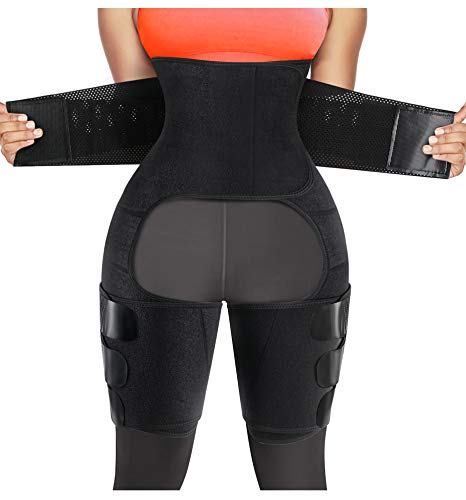 RACELO 3 in 1 Sauna Waist Trainer Butt Lifter Thigh Trimmer Sweat Body Shaper Exercise Wrap Stomach for Women Workout Sports (Black, L)