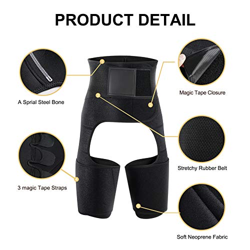 • ❤Enhance Hips Area and Compress Thigh Fat❤Our waist and thigh wrap is designed to lift your butt, and trim your thigh by 3 magic tape straps which ensures you could fit it at most extent. It helps you hold the thigh in tight,provide effective support, will not slip or bunch during any kind activities.