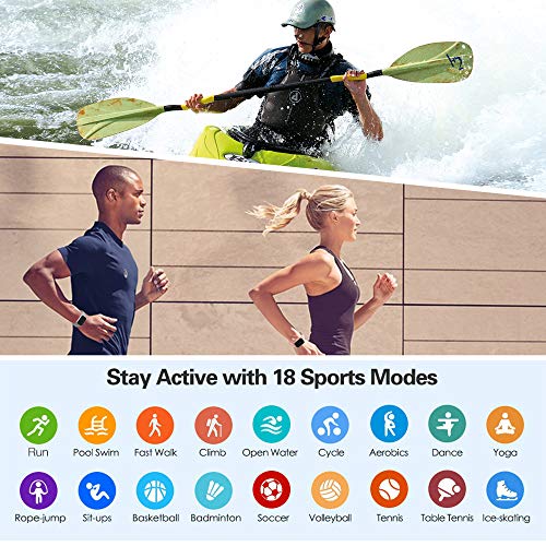 - Stay Active with 18 Sport Modes:There are 18 sports modes available on the watch,such as rope skipping(can achieve count),sit-ups(can achieve count),football,running and so on.