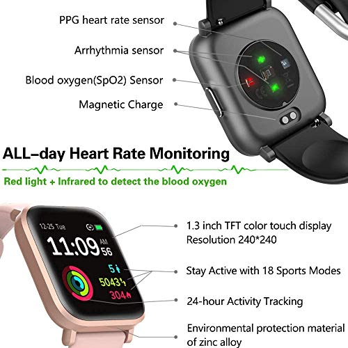 - Upgraded Heart Rate Sensor:24/7 heart rate and blood oxygen tracking,use infrared sensor for monitoring blood oxygen saturation levels (spo2),help with more accurate sleep tracking and detecting health issues like sleep apnea.PPG green light for monitoring heart rate to better tracker calorie burn and sends notifications if it’s exceptionally high or low critical.