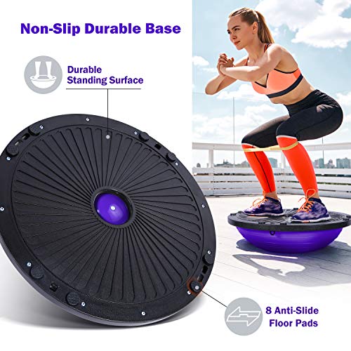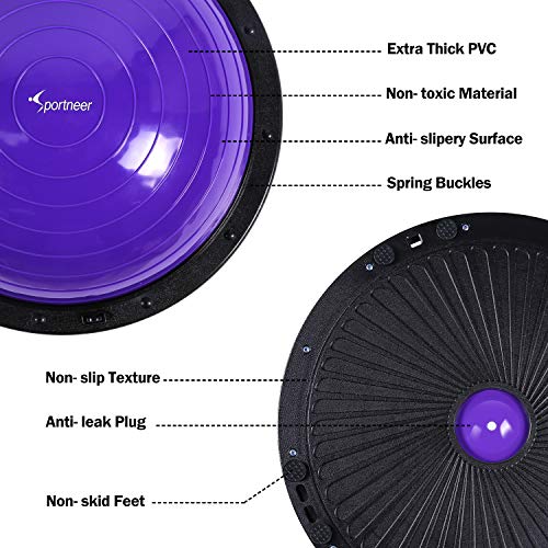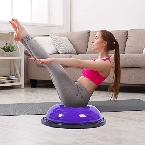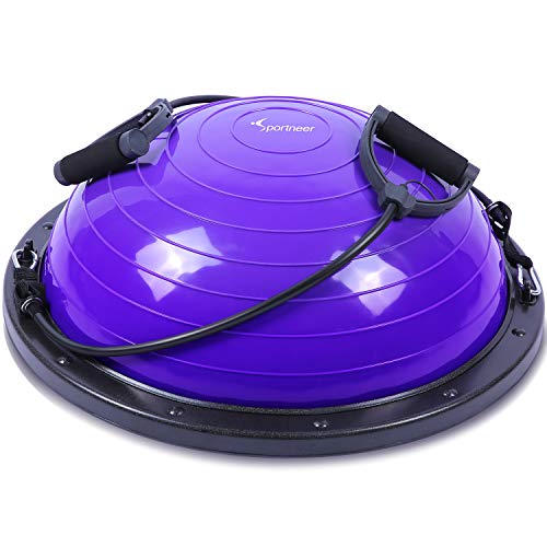 - Full Body Fitness: Strengthen your muscles as well as practice your mental focus with push-ups, squats, crunches, climbers, lunges, planks and many more workouts with this half ball and exercise bands