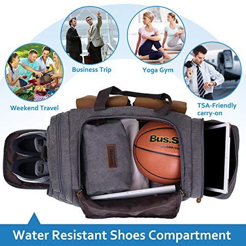 - ★【Built-in Luggage Tag & SHOE BAG(Gift)】You do not need to pay extra pennies for luggage tag and shoe bag.This canvas travel duffel bag provides a genuine leather luggage tag with a transparent see-through window attached on the side for a recognizable notification of the bag’s owner. *【Gift】* It is an additional benefit to you to get a premium waterproof shoe bag that has a drawstring design for an easy opening&closing and is spacious enough to fit size 12.
