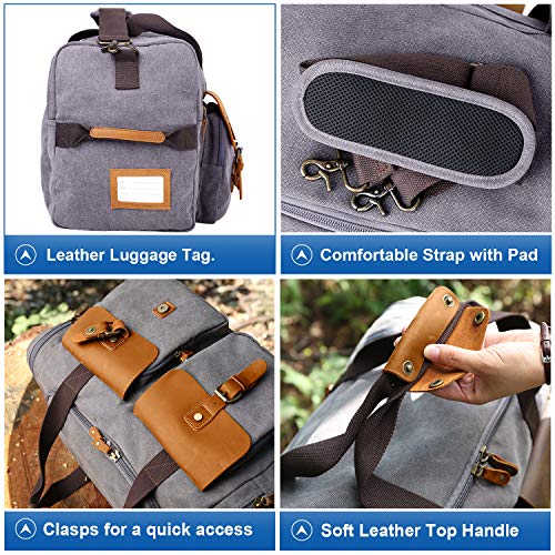 - ★【SMART STRAP DESIGN】Our carry on duffel bag is equipped with a detachable & adjustable shoulder strap made of sturdy heavy-duty canvas ,durable hardware hook and genuine leather reinforcement. The strap is built along with an adjustable thick & broad cushioned pad with breathable fabric covered,which helps make your shoulder more relaxing and free of pains and less fatigue.Plus, there is a side canvas strap with leather attached which is a favor for a convenient lifting and carrying.